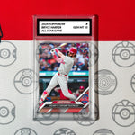 This 2024 Topps Now trading card features baseball superstar Bryce Harper in his Philadelphia Phillies uniform. The card is a sports trading card and is made of high-quality paper material. It is perfect for any collector or fan of the sport.