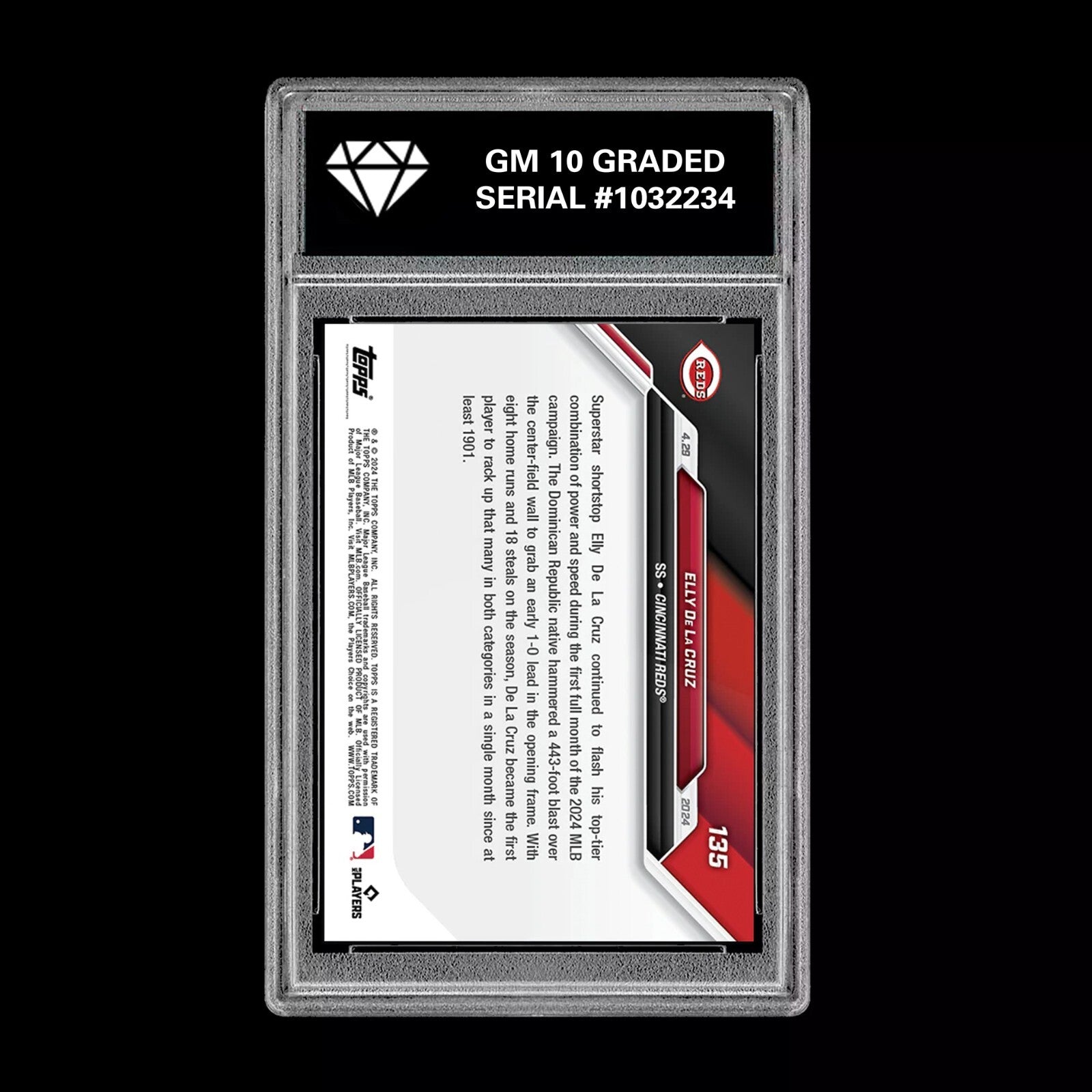 Graded 10 Elly De La Cruz #135 2024 Topps Now RC Rookie Card MLB HISTORY Baseball