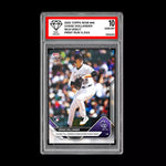 The product is a graded 10 Chase Dollander rookie card commemorating his debut win with the Colorado Rockies in 2025. This Topps NOW card, numbered 46, is a presale item that captures a significant moment in the young athlete's career. The card is a highly sought-after collectible for baseball fans and card collectors, showcasing the player's rookie season performance in the MLB.