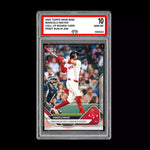 The product is a graded Marcelo Mayer 1st MLB hit trading card from the 2025 Topps Now set. This rookie card features the Boston Red Sox player's debut in Major League Baseball. Produced by Topps, this card is a sought-after collectible for fans and collectors alike, showcasing a promising young talent in the baseball world. The card number is 289, making it a valuable addition to any sports trading card collection.