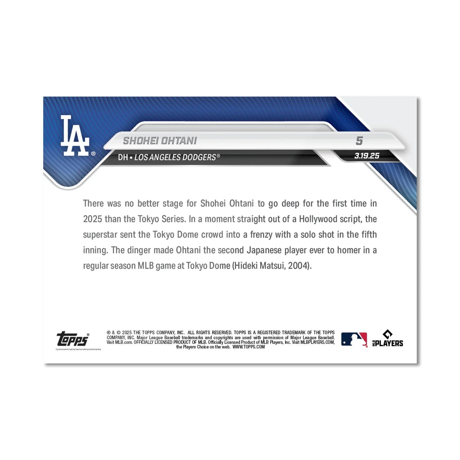 The product is a highly coveted Graded 10 Shohei Ohtani Tokyo Series Japan 2025 Topps NOW Card #5. This rare sports trading card features the talented baseball player Shohei Ohtani, part of the Major League (MLB) from Japan Series. With a PSA professional grading, this limited edition card is a collector's item for fans of baseball trading cards. The presale listing indicates its exclusivity and demand among baseball card enthusiasts, making it a valuable addition to any sports memorabilia collection.