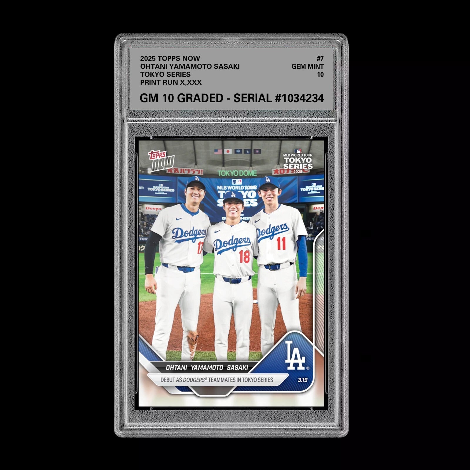 Graded 10 Shohei Ohtani Roki Sasaki Yamamoto RC 2025 Topps NOW Card #7 Baseball