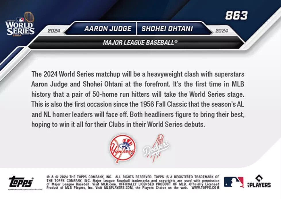 Graded 10 Aaron Judge/Shohei Ohtani - 2024 MLB Topps NOW Card #863 World Series Baseball