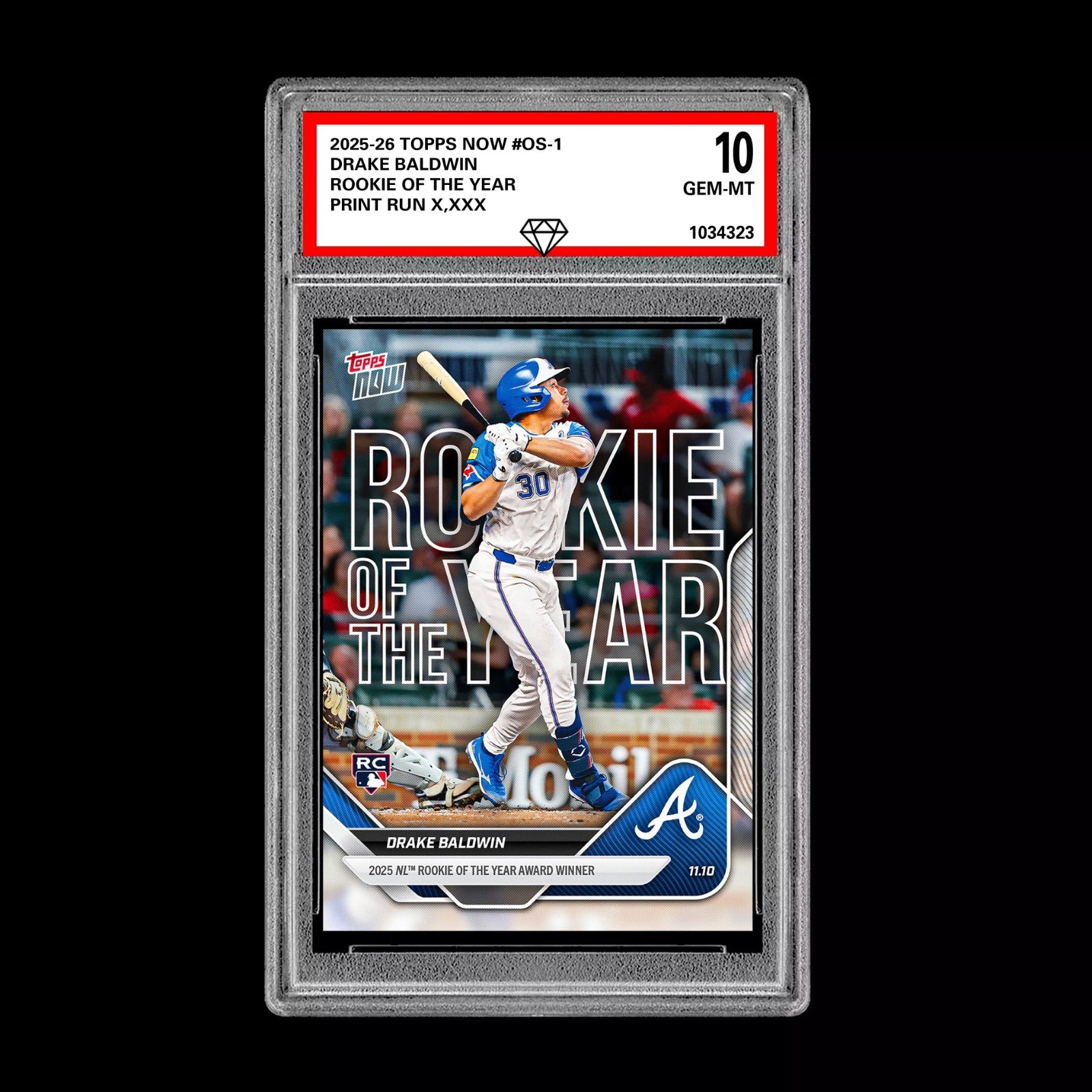 Graded 10 Drake Baldwin 2025 MLB Topps NOW Card #OS-1 Rookie Of The Year Presale Baseball