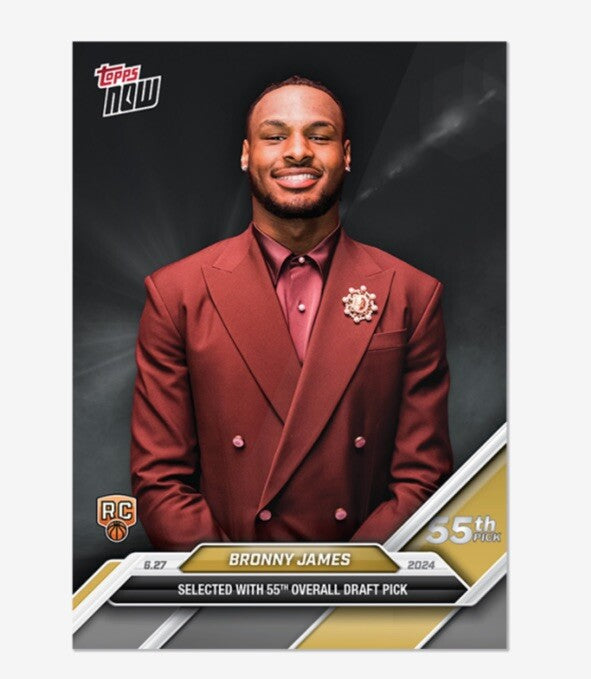 This is a rare opportunity to own a graded 10 2024 Topps Now NBA #D-9 Bronny James Rookie Lakers RC DRAFT Card. The card features the highly sought-after Los Angeles Lakers player and is part of the 2024 Topps Now set. It is a sports trading card that is perfect for any basketball fan or collector.