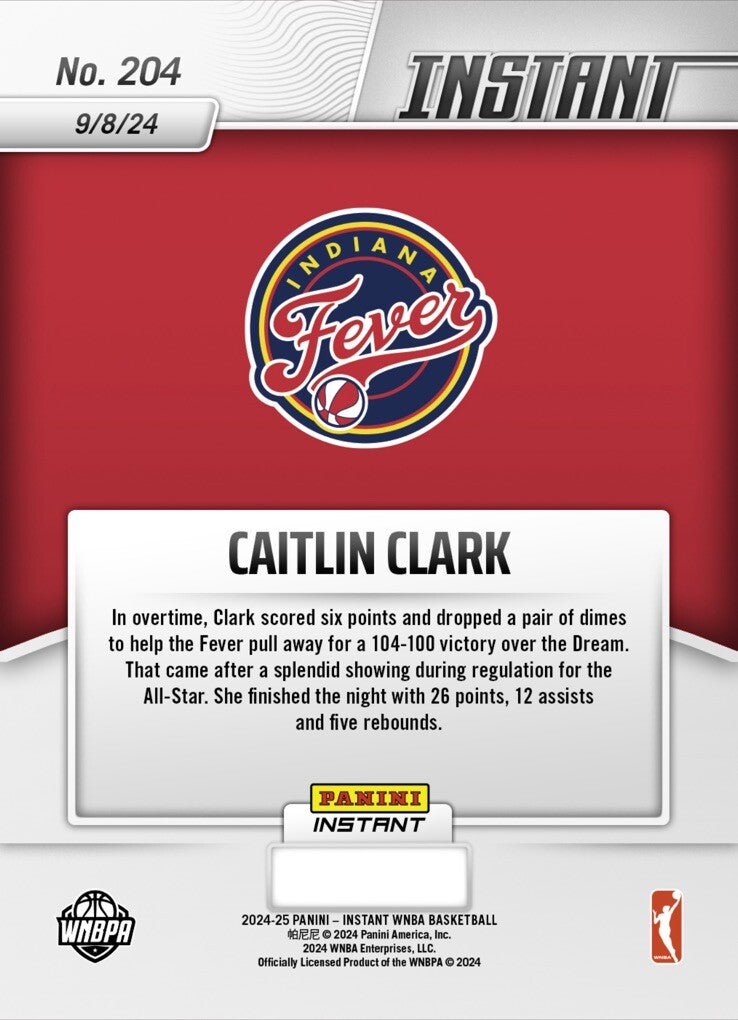 Graded 10 CAITLIN CLARK 2024 Panini Instant #204 Indiana Fever RC ROOKIE Card Basketball