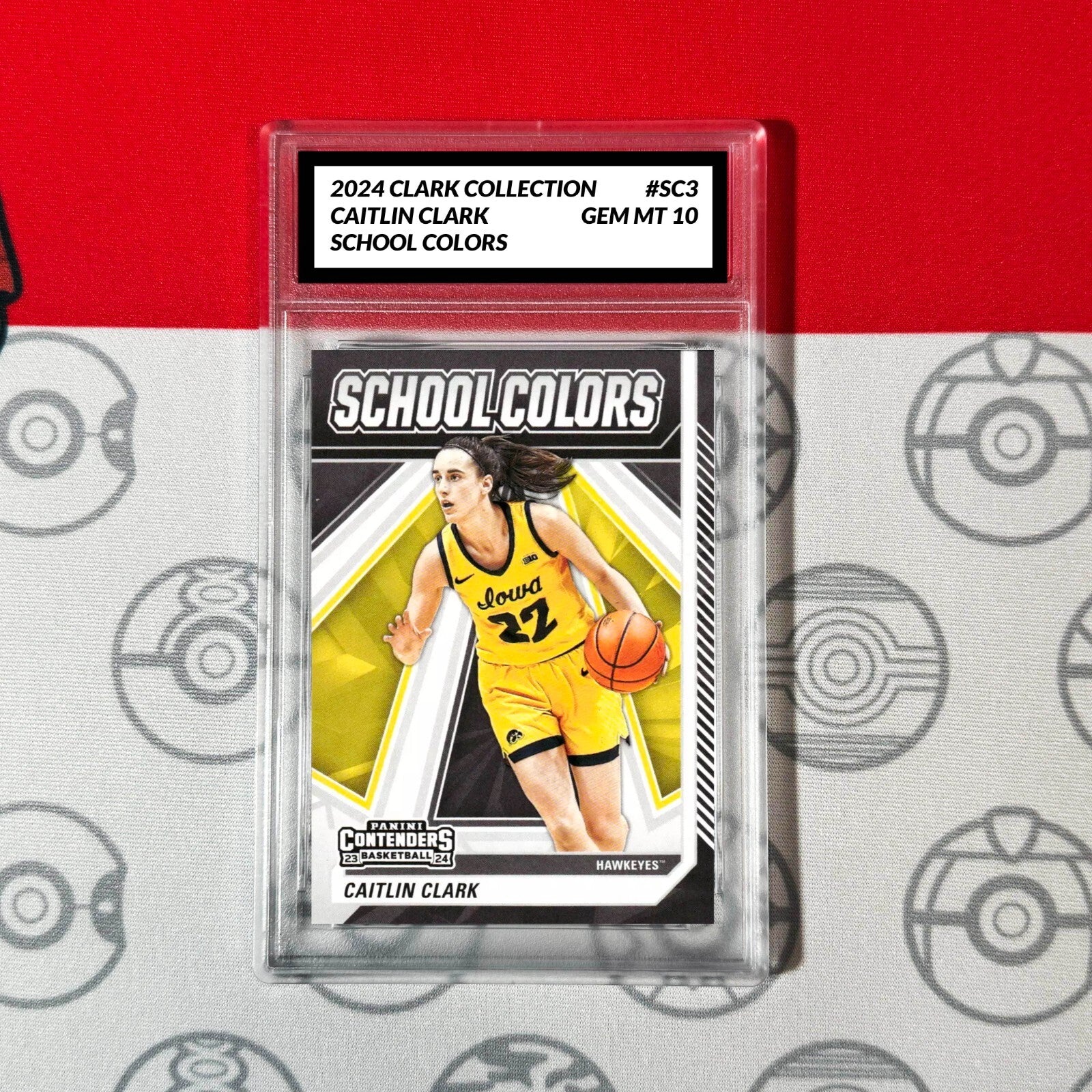 For avid fans of basketball and trading cards, this graded 10 Caitlin Clark 2024 Panini #SC3 Collection School Colors RC Rookie Card is a must-have. Featuring the rising star from the Iowa Hawkeyes, this card is a part of the exclusive Caitlin Clark Collection"School Colors" set.