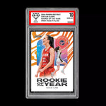 The product is a graded 10 Caitlin Clark Rookie of the Year trading card from the 2024 Panini Instant set. This sports trading card features Caitlin Clark, a basketball player for the Indiana Fever, and is designated as a Rookie of the Year parallel/variety card. The card number is CCROY and it is manufactured by Panini. This highly collectible card is a must-have for fans and collectors of basketball trading cards, showcasing a promising rookie player in the 2024 season.