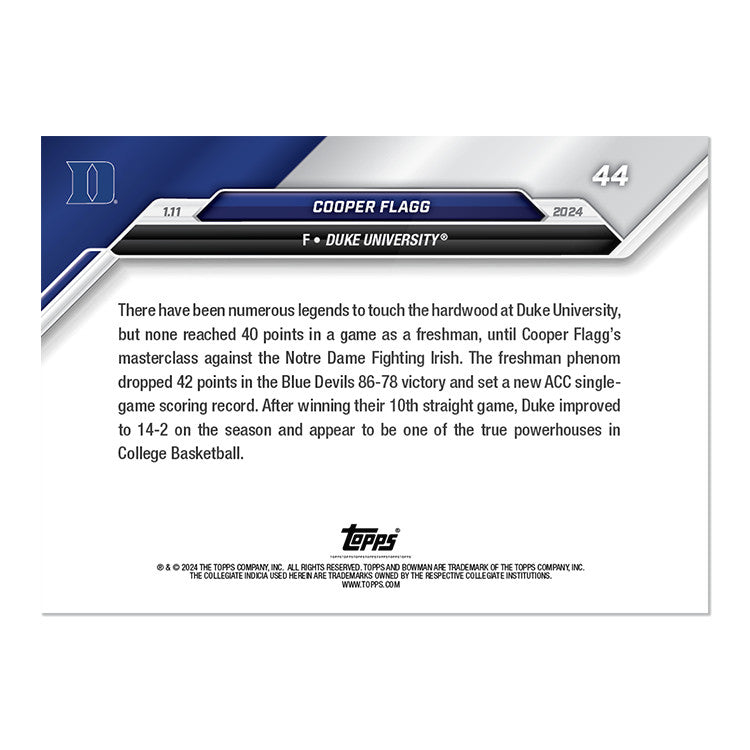 Graded 10 Cooper Flagg 2024-25 Bowman U NOW Card #44 Duke RC ROOKIE Basketball