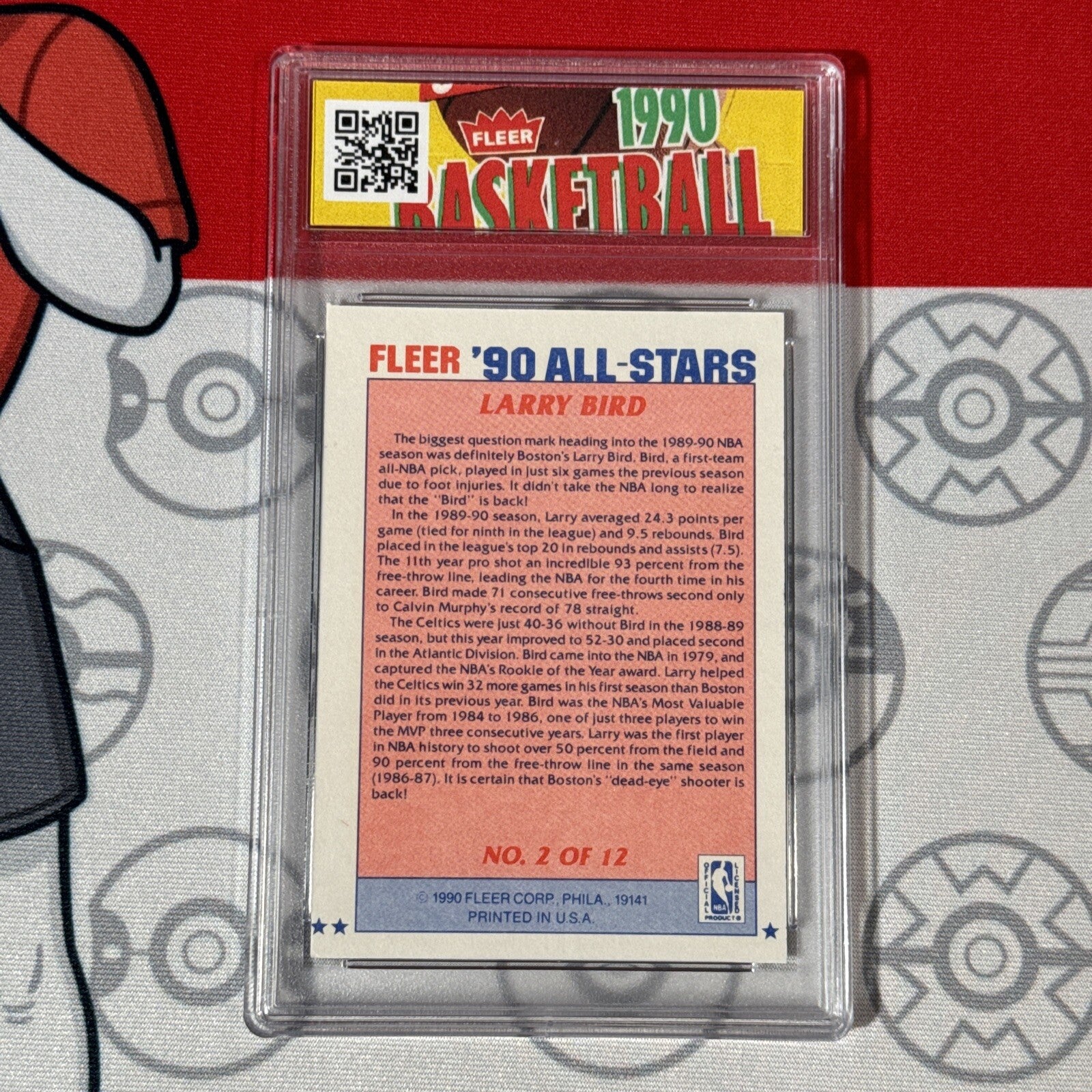 This is a rare and highly sought-after sports trading card featuring the legendary Larry Bird of the Boston Celtics. The card is from the 1990-91 Fleer All-Stars set and has been graded a perfect 10, making it a true gem for collectors. With its original and authentic Fleer Corp. manufacturer, this single-insert card is a must-have for any serious basketball fan.