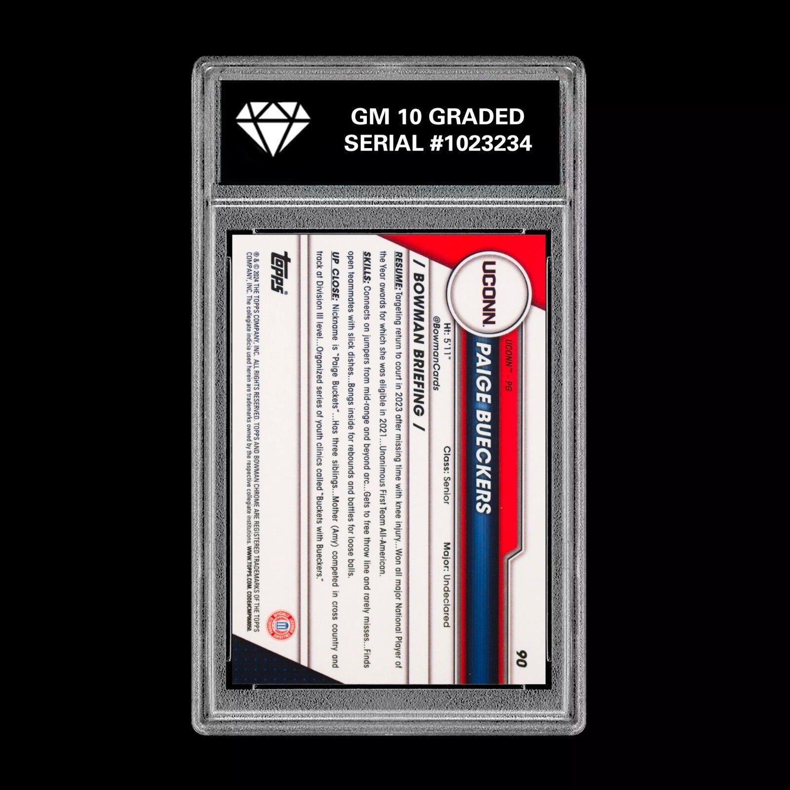 Graded 10 Paige Bueckers #90 2025 Bowman U University Chrome 1st RC Rookie Card Basketball