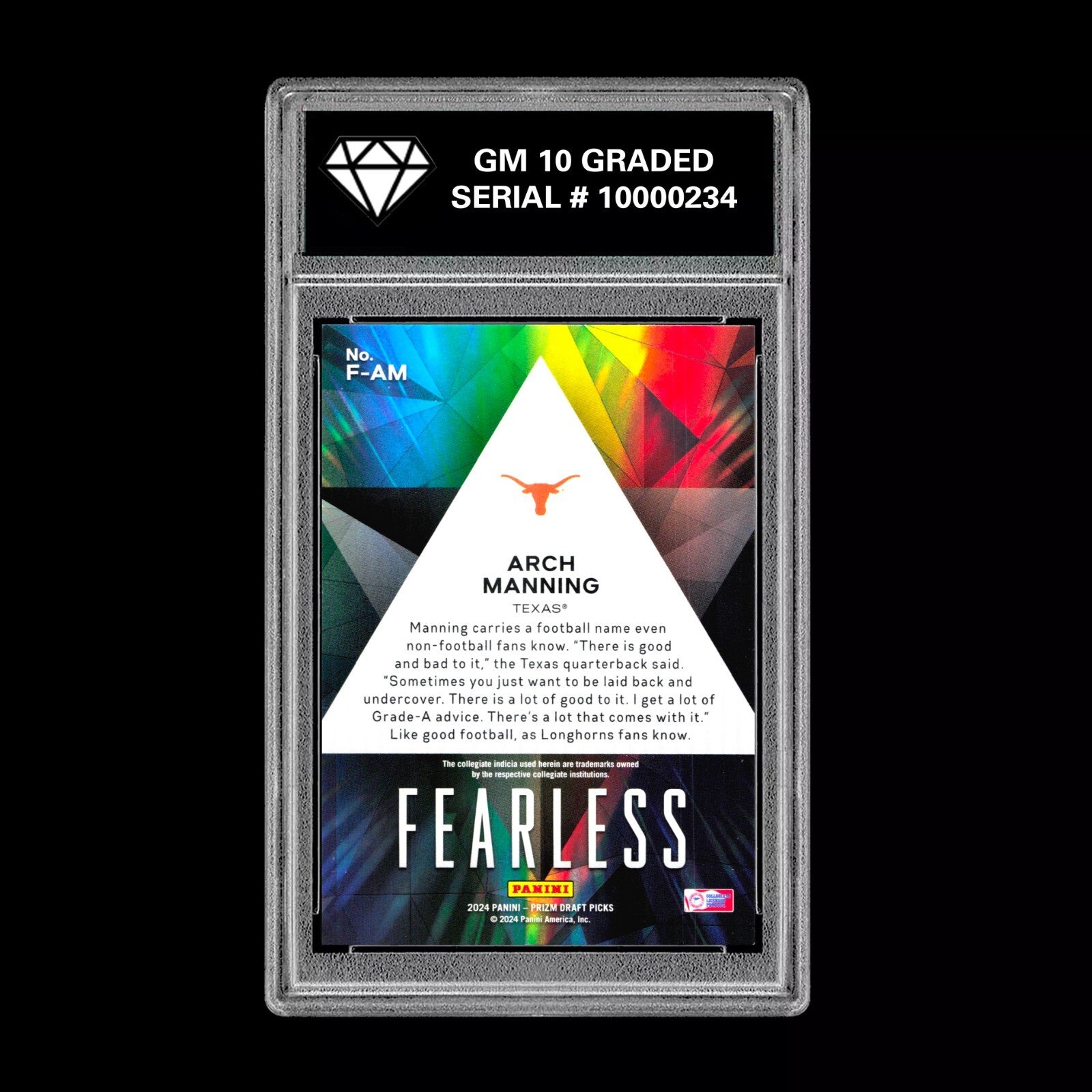 Graded 10 Arch Manning #F-AM Fearless Green 2024 Panini Prizm Draft RC Rookie Football