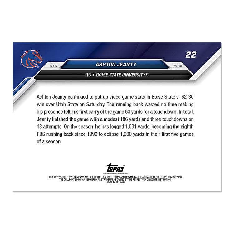 Graded 10 Ashton Jeanty RC Rookie 2024 Bowman U Now Football Card #22 Heisman Football