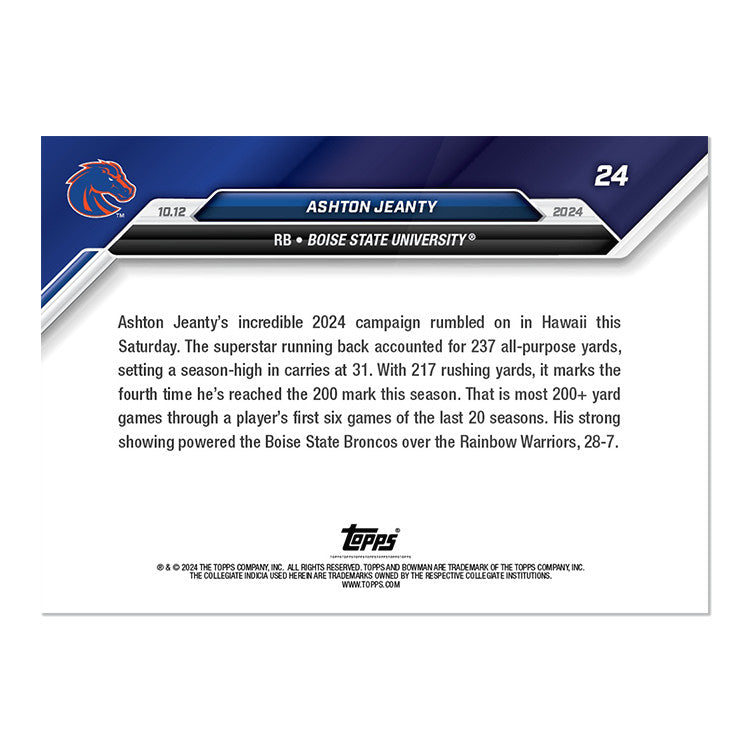 Graded 10 Ashton Jeanty RC Rookie 2024 Bowman U Now Football Card #24 Heisman Football