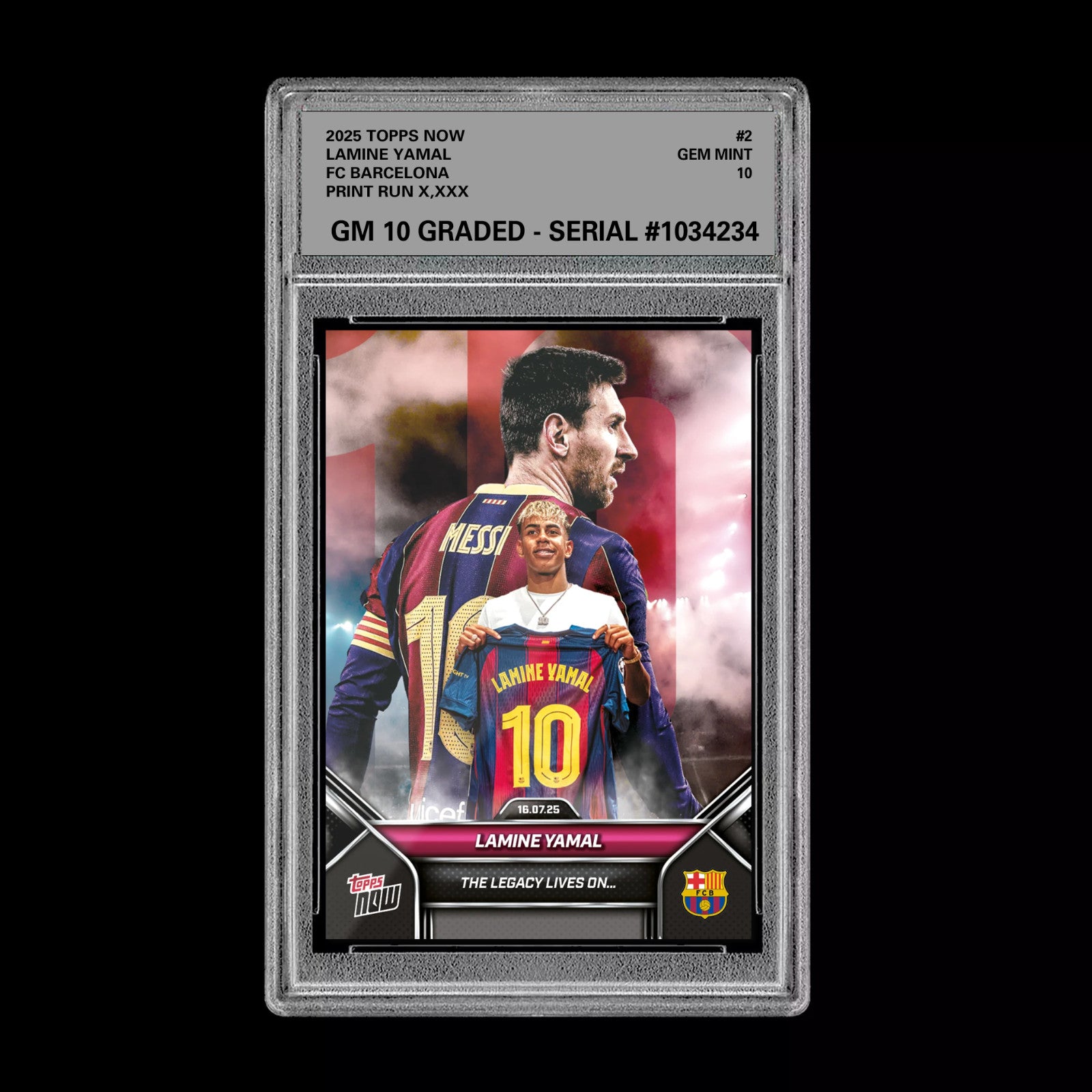 Graded 10 Lamine Yamal - 2025 TOPPS NOW #2 The Legacy Lives on Soccer RC Rookie Soccer