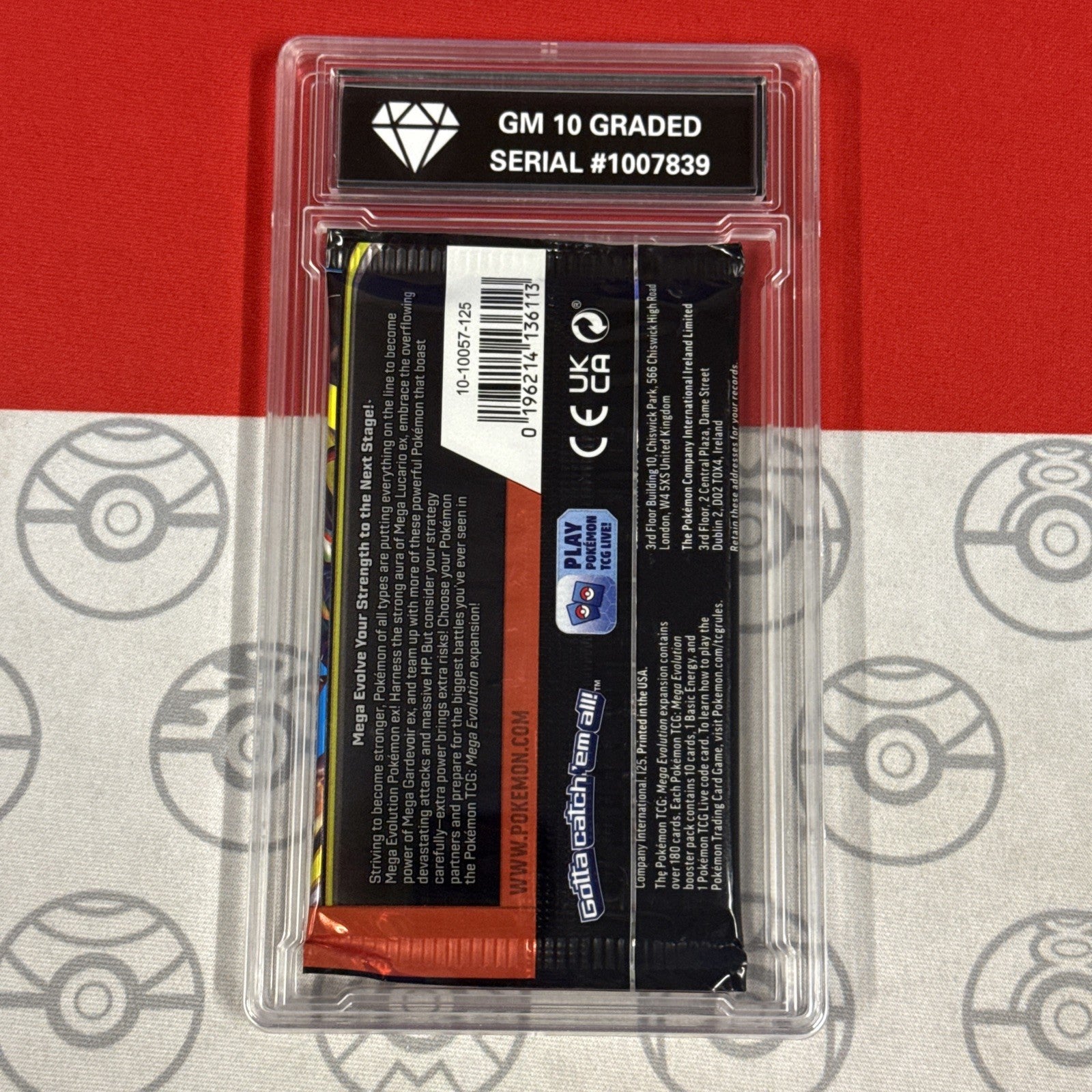 The product is a sealed Pokemon booster pack containing 10 cards featuring the Mega Evolution Venusaur character. The cards are standard size, made of card stock, and are from the year 2025. Manufactured by The Pokemon Company in the United States, these English-language cards are ideal for Pokemon TCG collectors and players aged 6 and above. This pack is a special edition with a Grade 10 rating, making it a highly sought-after collectible for fans of the franchise.