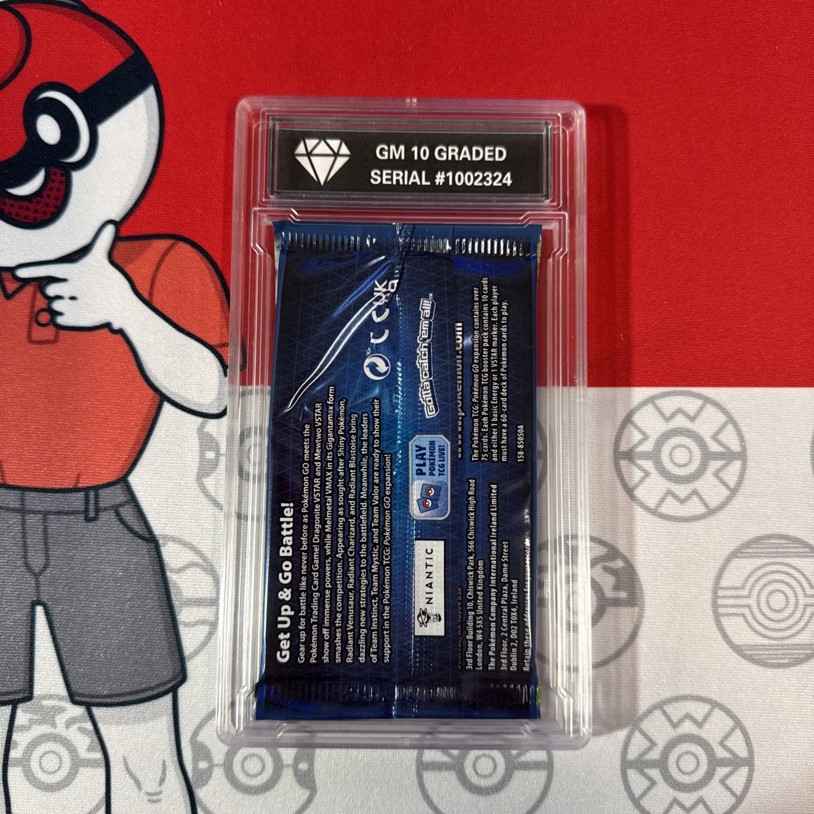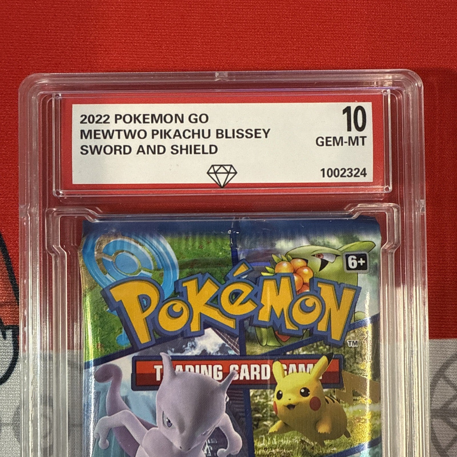 The product is a graded 10 2922 Pokemon GO sealed booster pack featuring popular characters like Pikachu, Mewtwo, Gyarados, and Blissey. Each pack contains cards made of card stock and manufactured by The Pokemon Company in the United States. The pack is in English and suitable for ages 6 and up. This collectible card game item from the Pokemon TCG is a must-have for fans looking to add rare and powerful cards to their collection.