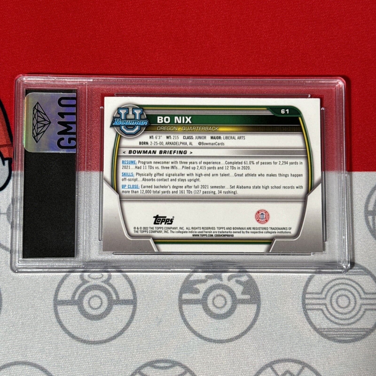 Bo Nix Graded 10 2022 Bowman University Chrome #61 RC Card Denver Broncos QB Football