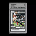 The product is a GM10 graded 10 Ashton Jeanty rookie card from the 2025 Panini Instant NFL #31 set. It features Jeanty striking gold with a touchdown against the 49ers. This original, English-language card showcases the player in his rookie season, manufactured by Panini on standard-sized card stock with a 20 pt. thickness. It is a short print card that is part of the NFL Preseason collection, making it a valuable addition for fans and collectors of football trading cards.