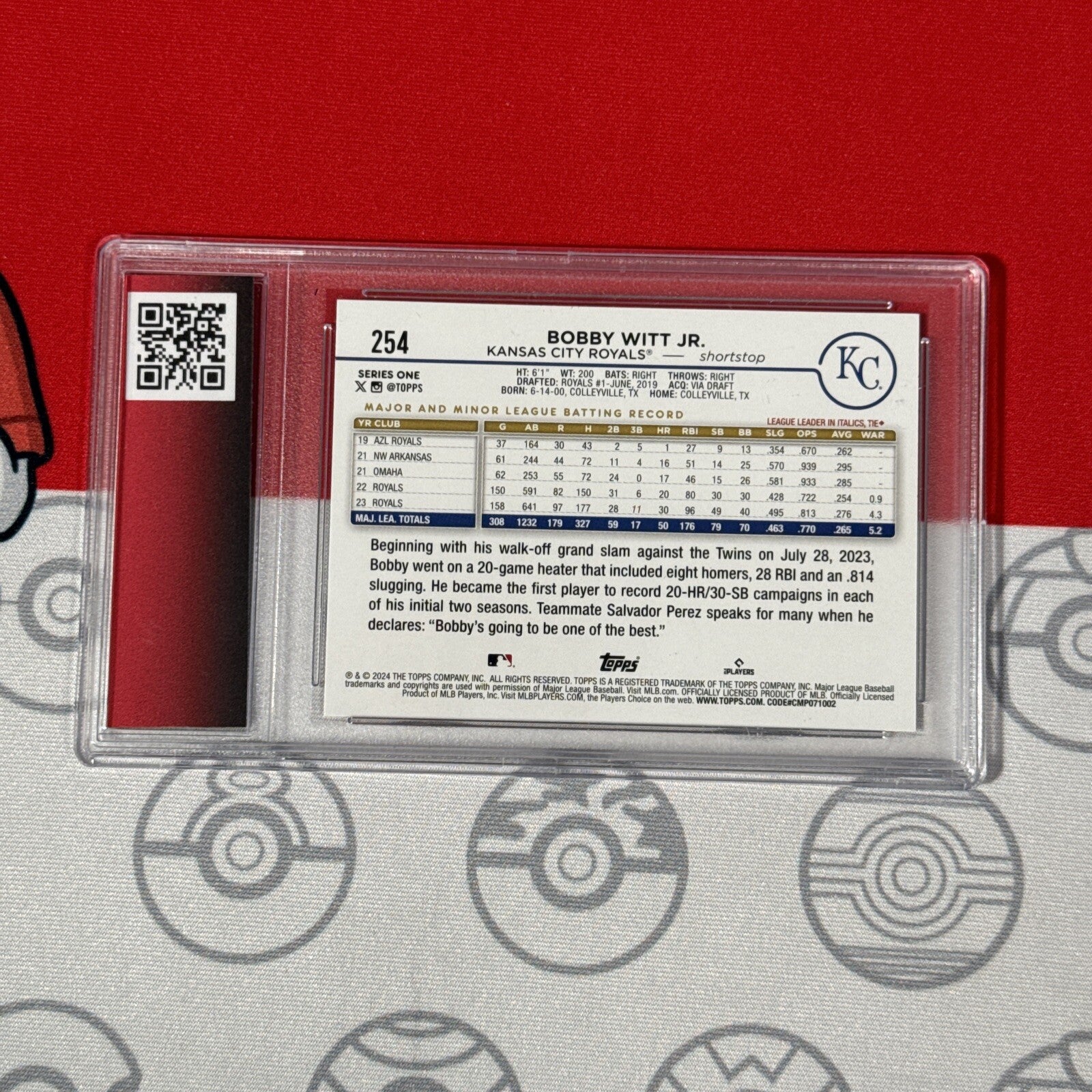 Graded 10 2024 TOPPS ALL STAR GAME FOIL STAMPED ASG CARD BOBBY WITT JR #254 Baseball