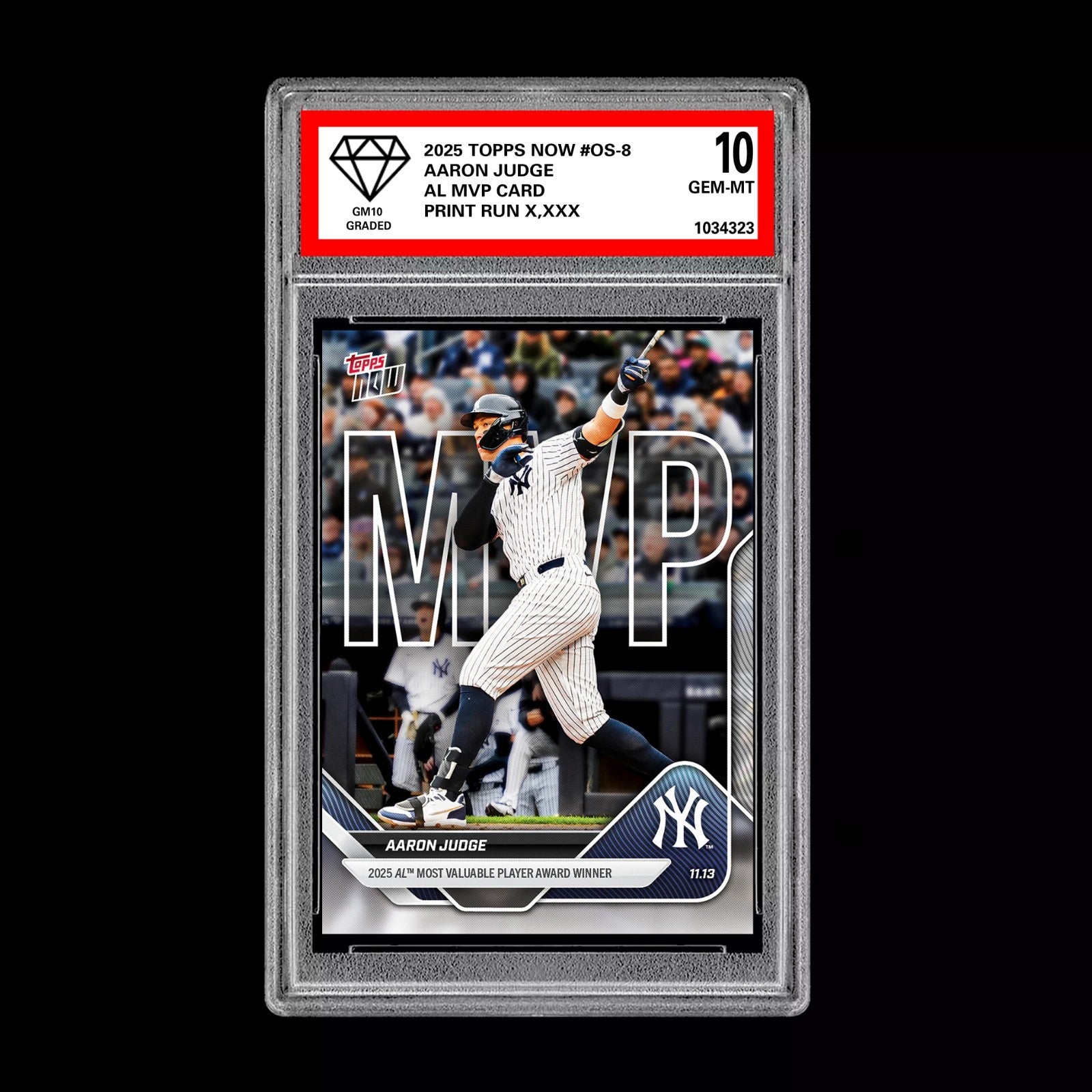 The product is a highly sought-after 2025 Topps Now baseball trading card featuring Aaron Judge, a standout player in Major League Baseball. This specific card, graded a perfect 10 by Professional Sports Authenticator (PSA), is a rare find for collectors and fans of Judge. With the card number OS-8, this Topps Now card captures a significant moment or achievement from the 2025 season, making it a valuable addition to any sports card collection.