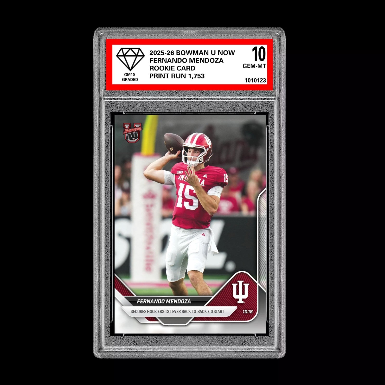 Graded 10 Fernando Mendoza RC Rookie Card 2025-26 Bowman U Topps Now #33 Football