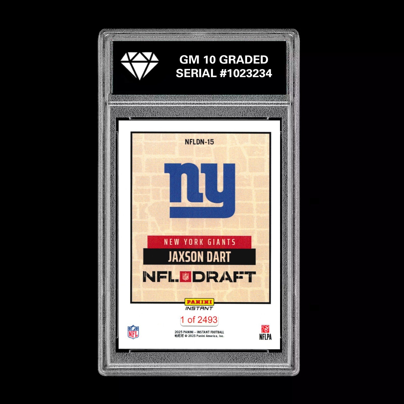 Graded 10 Jaxson Dart RC Rookie 2025 Panini Instant NFL Draft #15 NY Giants Football