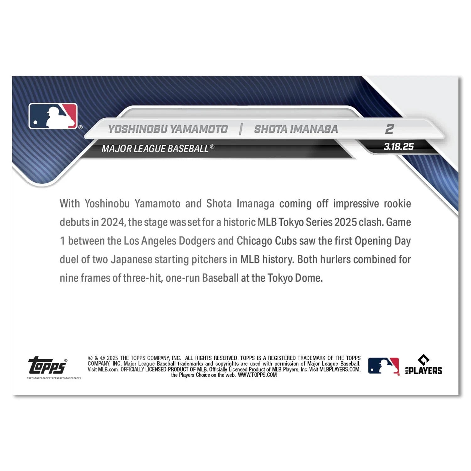 Graded 10 Yoshinobu Yamamoto Shota Imanaga 2025 MLB Topps NOW Card 2 Baseball